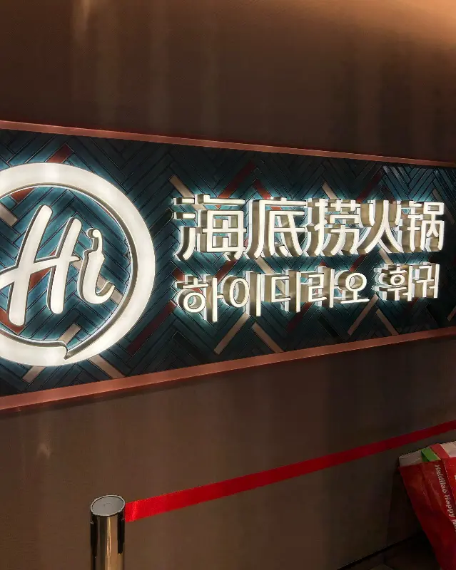 화려한 조명이 인상적인 하이디라오 제주도점 간판
