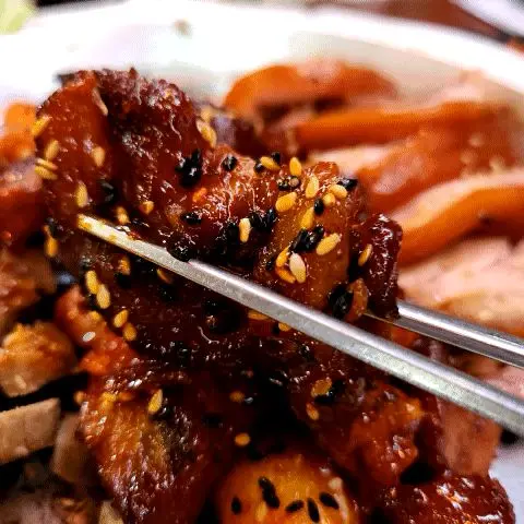 가장 먼저 족발을 맛보았다. 젓가락으로 집어 올리자 쫄깃함이 느껴졌다. 입안에 넣으니 흑돼지 특유의 고소한 풍미가 은은하게 퍼져 나갔다. 껍질은 쫄깃하고 살코기는 부드러워 완벽한 조화를 이루었다. 특히 황칠나무를 넣어 삶았다는 족발은 잡내 없이 깔끔한 맛이 일품이었다. 족발 한 점을 새콤하게 무쳐진 부추와 함께 먹으니, 입안 가득 퍼지는 향긋함이 족발의 풍미를 더욱 끌어올렸다.