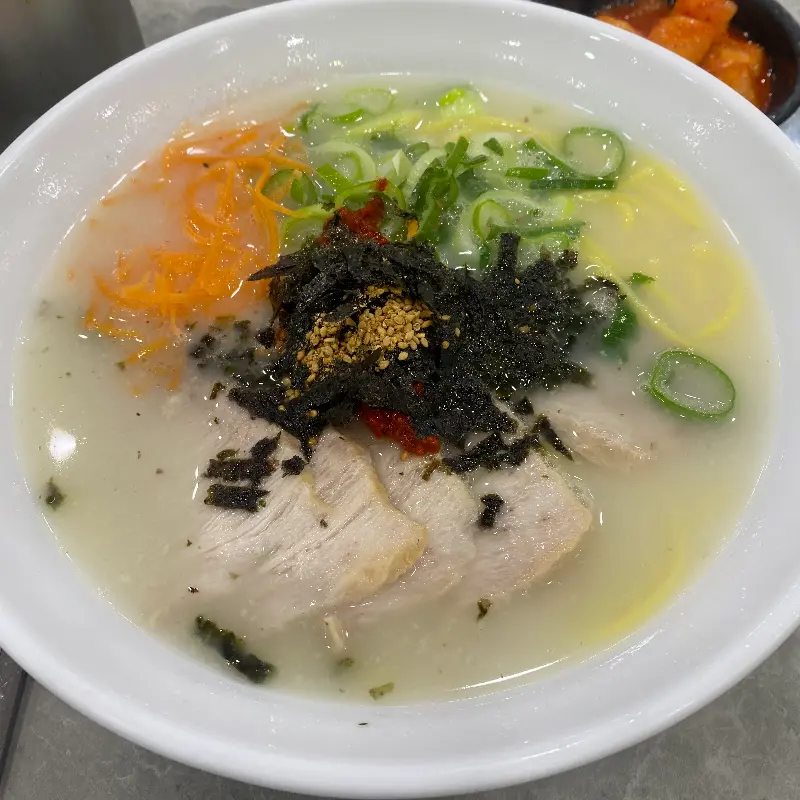 젓가락으로 면을 휘저으니 쫄깃함이 그대로 느껴진다. 면발이 탱글탱글 살아있네, 살아있어! 국물 한 모금 들이키니… 크으, 이 맛은 진짜 레전드! 진한 사골 육수의 깊은 풍미가 입안 가득 퍼져 나간다. 돼지 특유의 잡내는 1도 없고, 깔끔하면서도 묵직한 맛이랄까? 마치 내가 힙합 비트 위에 라임을 뱉는 듯한 희열이 느껴진다.
